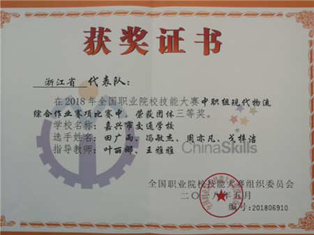 嘉興市交通學(xué)校物流專業(yè)學(xué)生在全國技能大賽中喜獲三等獎(jiǎng)