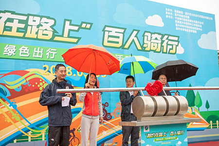 雖然活動當(dāng)天風(fēng)雨交加,但完全阻擋不了參與者們的熱情。來自寧波銀行嘉興分行、民建嘉興市委青年工作委員會、嘉興市青年創(chuàng)業(yè)就業(yè)促進(jìn)中心、嘉興市市場監(jiān)督管理局的職工整裝待發(fā)。啟動儀式結(jié)束后,大家沿著凌公塘公園騎行一圈,在雨中,職工們用一道青春靚麗的騎行風(fēng)景線詮釋健康、低碳、綠色的生活主張。